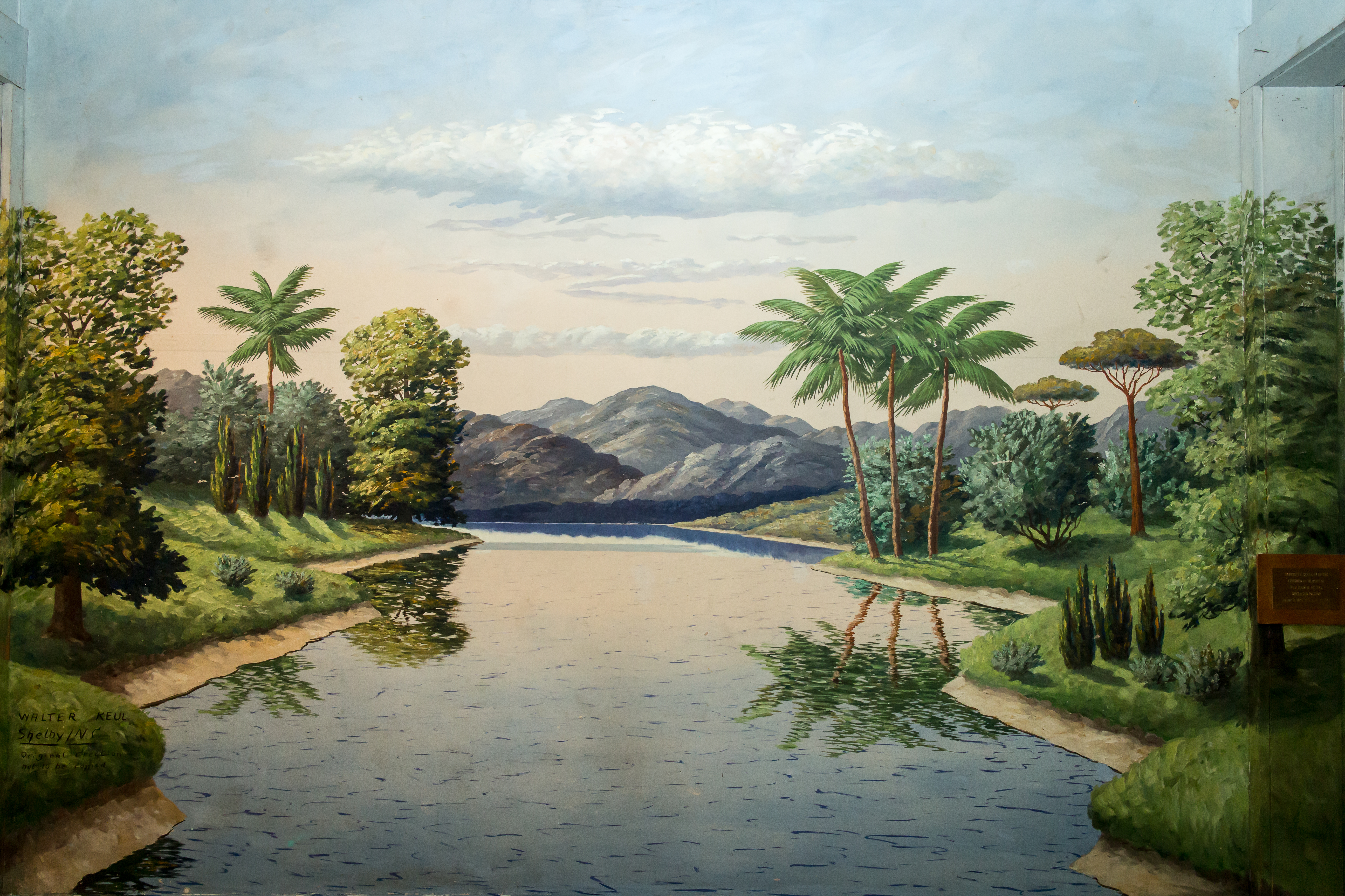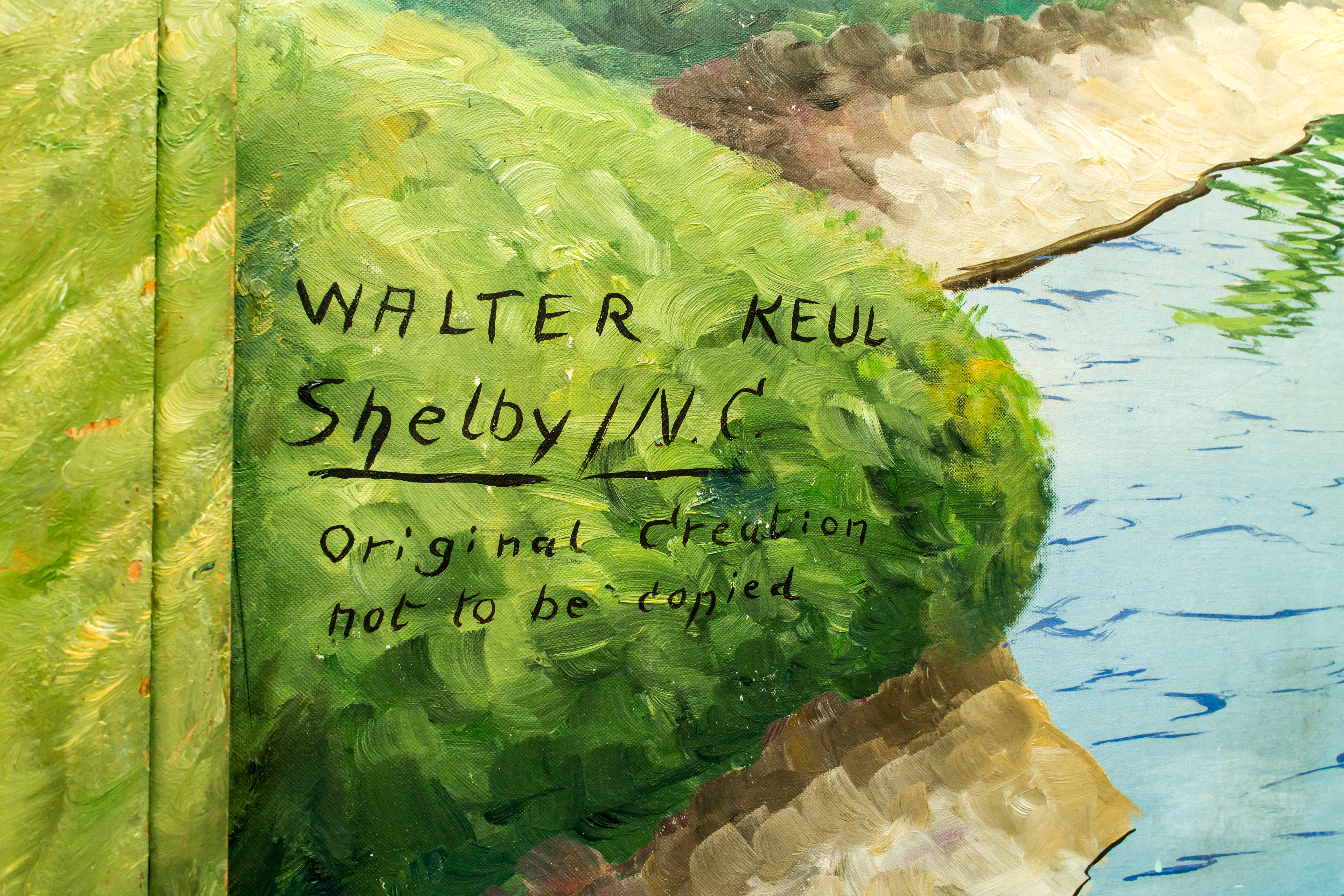 Signature of the artist, Walter Keul, who did this baptistry painting, circa 1939-1940. He also painted other baptistries and paintings in NC.