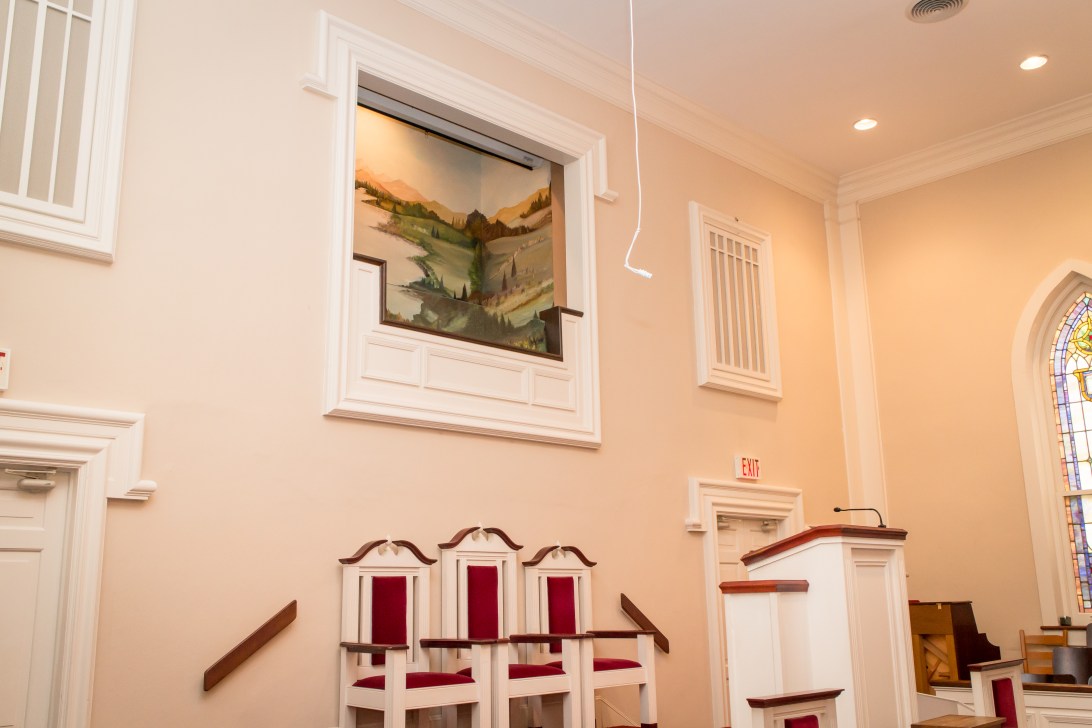 Jersey Baptist Church baptistry from the left